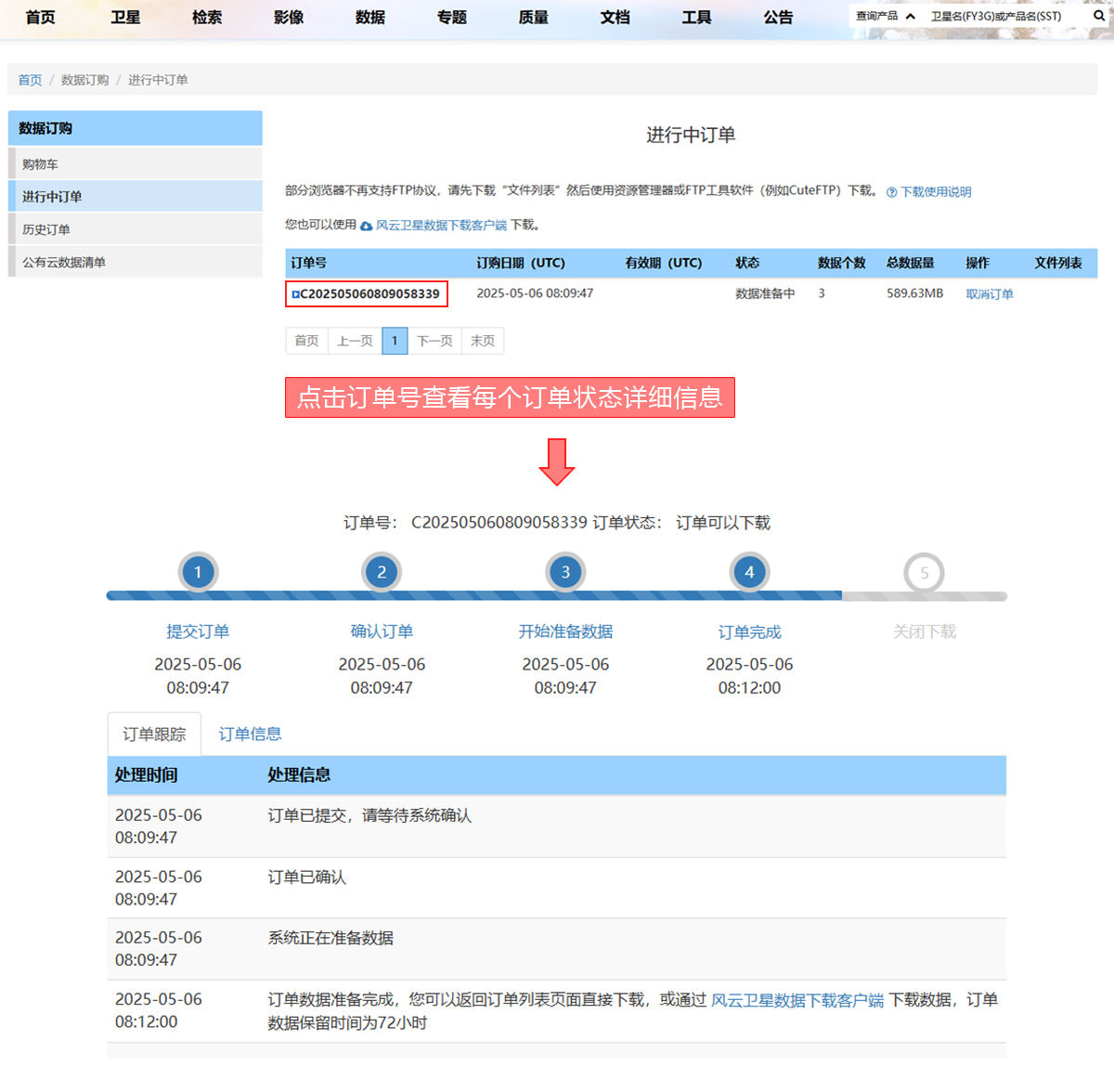根据您所订购数据的存储位置以及总订购数据量的不同,订单的准备时间也有所不同。一般情况下: