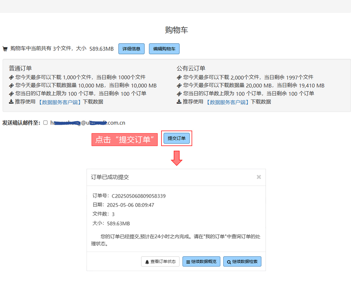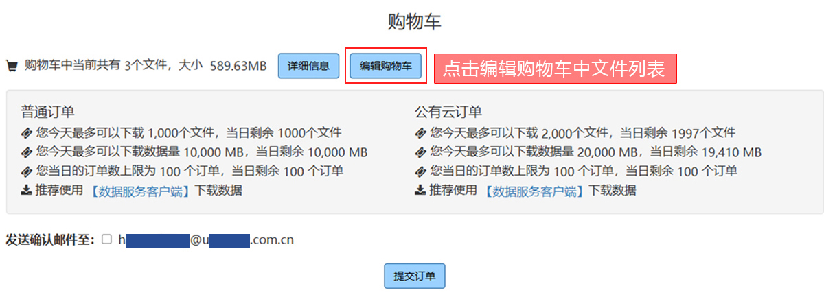 本站的实名注册用户分为两个级别:普通用户、升级用户。各级用户可以查看的数据以及每日订购数据量均有所区别。普通用户登录后,日下载数据量为30GB,目前可通过参与年度问卷调查的方式提升日下载数据量至100GB。