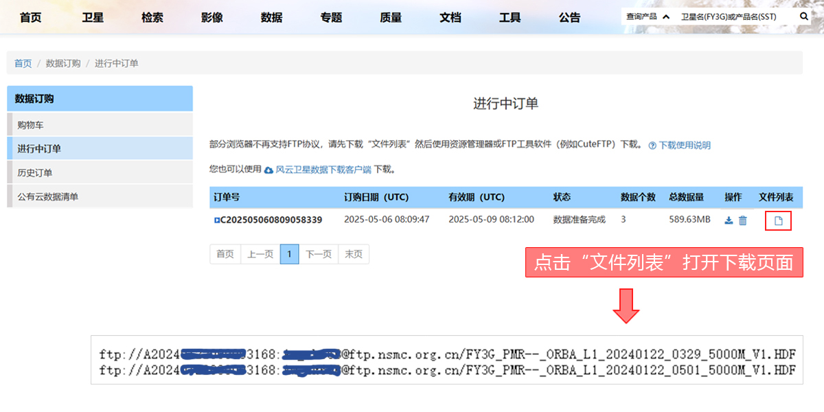 进入“我的订单”页面,点击订单信息中的“文件列表”链接,下载订单的文件列表。