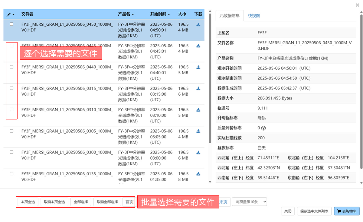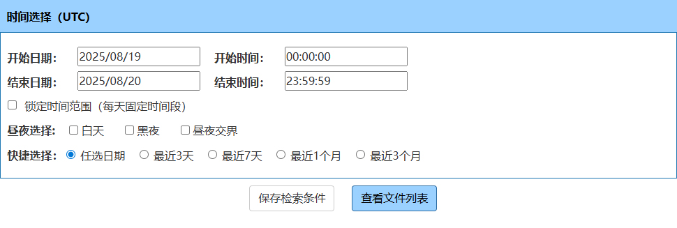 包含信息字段:卫星名称、产品类型、仪器通道、投影方式、观测起始日期、观测起始时间、数据格式。