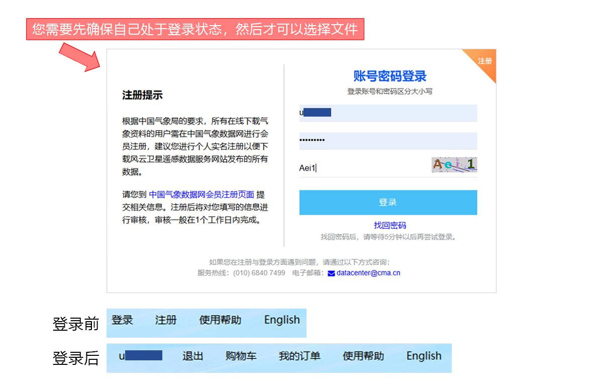 | 注册方式 | 实名注册并审核通过 | 通过升级申请并审核通过,或参与“年度风云卫星数据及应用服务调查” |