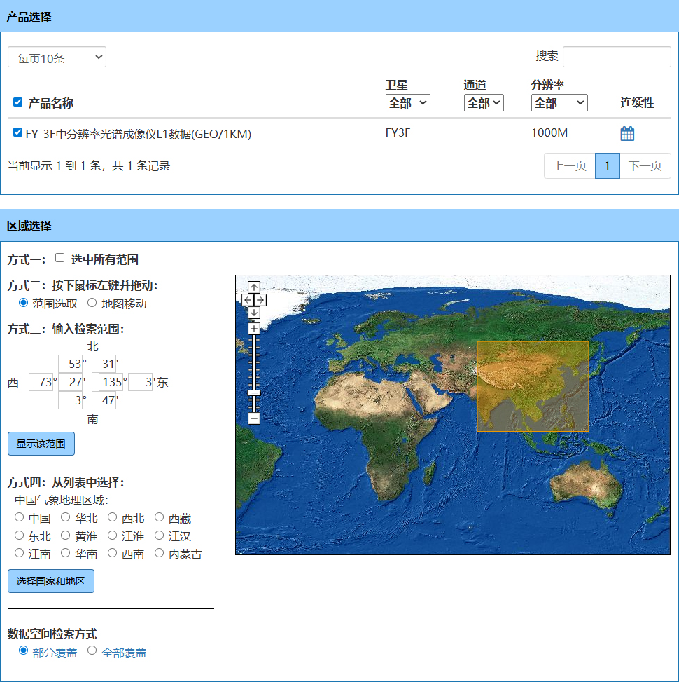 气象卫星产品按时效和覆盖区域划分为两类:实时产品和延时产品。